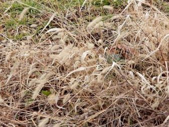 ※クビキリの寝床用の枯れたイネ科野草を採集。