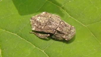2011.06.24記:これはセミの仲間でヨコバイ科ミミズク亜科ミミズクの若齢幼虫らしい。成虫も見たことがないので是非脱皮した後の姿にも出会いたいものだ。