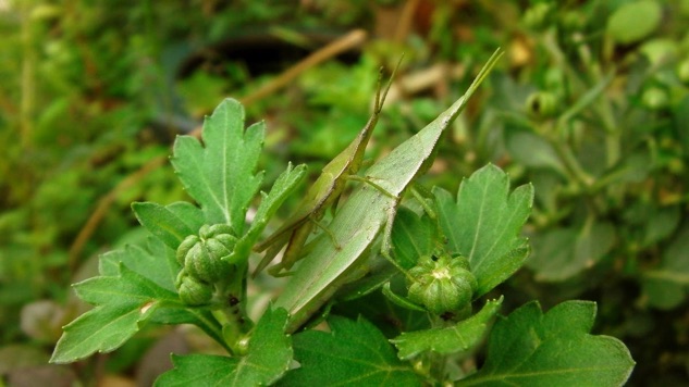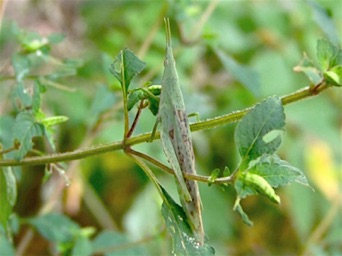 自分にとってこのバッタほど身近なバッタはいないだろう。子どもの頃を過ごした50年前の東京江東区はまだまだ野原や空き地がたくさんあって、草が生えているところや池、どぶ川の中にまで色々な虫達が生きていた。その中でもこのオンブバッタは数が多く、緑があるところでは必ずといってよいほど目についた。草原を歩き回ったり、草むらに隠れた野球のボールを探したりするとき、目の前から次々に飛び跳ねて逃げ惑う姿が今でも鮮明に甦る。