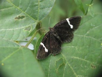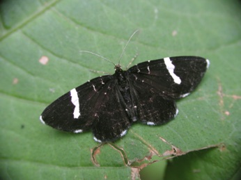 この蛾もチョウと思い込み、ハチノジクロナミエダシャクと同定に至るまで1年以上かかった。この蛾は年に数回行く裏高尾の観察地(滝の修験場の入り口)の車を止めるところで必ず出会う。