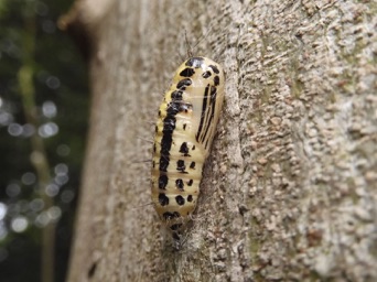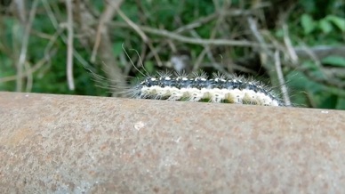 この時期のガイコツ山ほかはとにかく毛虫がいっぱい。木の枝先から降ってくるので帽子を伝って首筋に入り込んだり、服を伝って露出した肌に這ってくる。つい叩き落としたり振り落としたりするとチクリと刺される。そろそろヤブ蚊も活動する時期であるが、今はこの毛虫に注意。レスタミンコーワクリームは野外撮影時の必需品。でも、あまり自衛が過ぎると撮影したい虫が寄って来なくなるのがジレンマ。