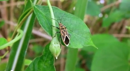 日本の種でいうと、ヒメジュウジナガカメムシ、ヒメマダラナガカメムシなどと似ている。このカメムシを見つけたのは、抱卵している大きなカメムシ(アシブトカメムシ?)のすぐ近くの葉にいた。当方が見てきた日本のナガカメムシの仲間はベジタリアン。この観察したカメムシもきっとそうだと思うが、オオキナカメムシの卵を狙っているように見えなくもない。