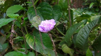 2013.08 タイ HHL/チェンライ。当方が村でホームステイするお宅のほぼ真向かいのウリ棚の下に咲いていた。