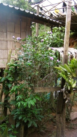 2012.10.14 HHL、滞在中当方がお世話になる家の中庭のムクゲ。村にはところどころにこのムクゲが植えられていて、ピンクの花を咲かせていた。アオイ科の花としてはこのムクゲの他にハイビスカス、ウナズキヒメフヨウが各家ごとにあるくらい良く見られた。