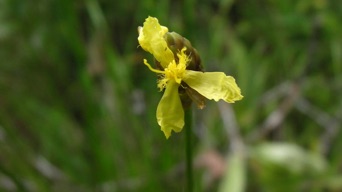 この花を見て、2011年ラオス、ビエンチャン郊外のプーカオクワイ自然保護区で撮影した湿生植物を思い浮かべたが、帰国後に見返すと花の付き方が異なること、虎斑がないことなど、小さなところに違いが見られ、同じ種ではないと判断したが、大きな3弁や蕊の特徴等は共通する部分があるのでアヤメ科の植物であろうと推測が付いた。