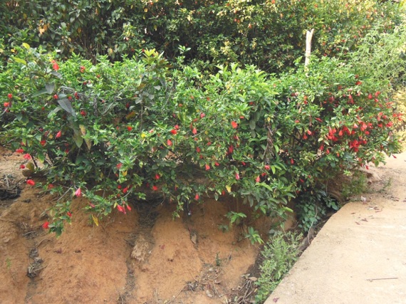 2015.02 HHL : AFC(アグロフォレストリ・センター)の法面(斜面)の土留め用としてこのウナヅキヒメフヨウを利用するということで、川に面したウナヅキヒメフヨウの垣根から挿し木用の枝を採取してポット苗を400鉢作った。