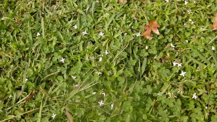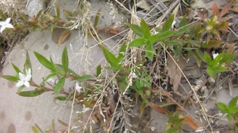上は 2012.09.29 メンフィスに向かう途中の、ミシシッピー州境にあるWELCOME CENTER中庭で撮影したもの。上段の写真にはグランドカバーの芝生やクローバーと一緒に白い十字形の白く散らばっているのがこの花。クローバーの葉と比較すれば小さな花であることがわかる。が、普通のムグラ系の花は米粒程もないのでそれからするとすごく大きい花ということになる。
