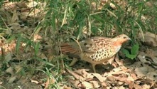 茶畑の畝に6羽、行列を作って餌を漁っていた。帰宅してチェックするまでキジのヒナかと推測していた。この動画は昼頃ガイコツ山に入る前に撮影したもの。帰り道で茶畑の手入れをしていた農家の人に、昼間に写したデジカメの動画を見ていただいたが、キジのヒナならば2羽くらい。たくさんいるのはコジュケイだろうと教えていただいたので、思い込みはすぐに修正できた。
