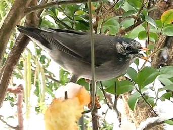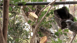3点共、冒頭はヒヨドリ。ヒヨドリに斥候をさせ、安全を確認できたらムクドリが餌を奪うといった戦略が見れる。この餌場に来るヒヨドリは1羽。ムクドリはペアーなのか親子なのか大概3羽。個の力の差ではなく数の優劣であろう。
