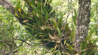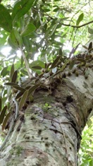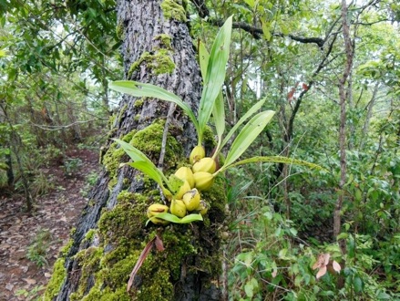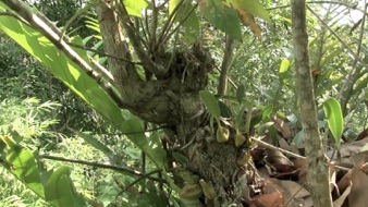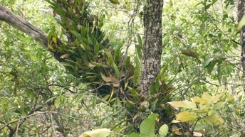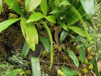 4回目のHHLにしてようやくこのようなランが繁茂する光景を見ることができた。この木はかなりな急斜面に斜め上に向かって生えており、容易に近づいてみることは出来なかったが、葉やバルブの様子からバルボフィラムと見当をつけることが出来た。2010年8月の記録にもバルボらしき株があり、この記録をそれに追記する形を採るか否か迷ったが、この種そのものもバルボと決めつけられないので新たなページを設けることにした。