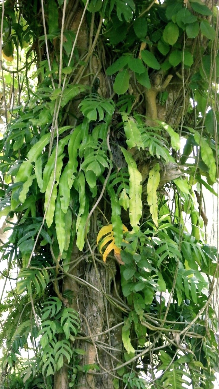 オオタニワタリの葉は主軸に対してロゼット状に展開する。これはこれは1葉1葉が自らの天地を求めて木を這い上がったり、取り巻いているようだ。