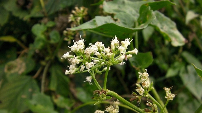 草体全体のニュアンスはイケマに似ているが花の形はヒヨドリソウ/フジバカマに似ている。葉は肉厚で光沢があり、比較に出したどちらとも共通点がない。困った。きっと救いは彼方から差し伸べられるだろう。