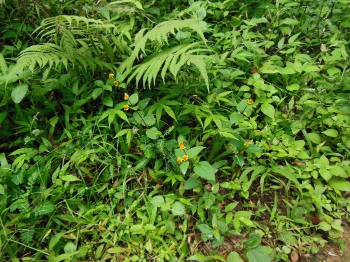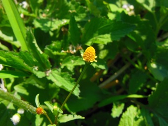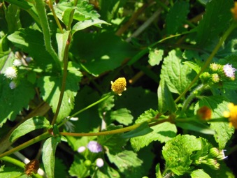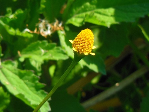 2013.08 HHLの水田地域で撮影。 第一印象はハキダメギクの黄花かと目に映ったが、一応フシザキソウによって黄色いハキダメギクに似た種が存在するのを確認していたので、今度はフシザキソウとのマッチングという操作があり、明らかにそれらと異なる種であるとわかった。が、帰国してから調べているがなかなか同定できない。花の形からはオランダセンニチ属のヌマツルギクという種に似ているが、葉の形はオランダセンニチの方が近い。しかし、この両方とも外形が似ているというだけであり、正確な同定の根拠にならない。