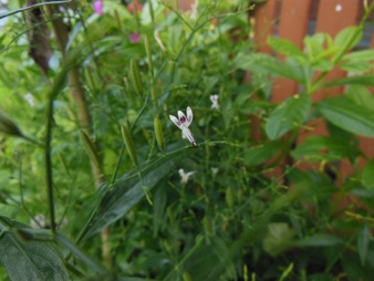 2013.08 チェンライ市内。定宿のホテルの裏道い面した工場の植栽。小さな白い花が光っていたのでついカメラを向けてしまった。