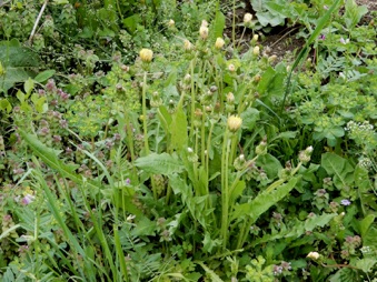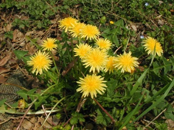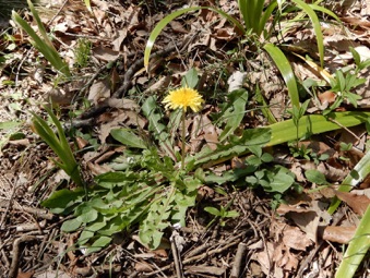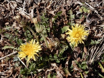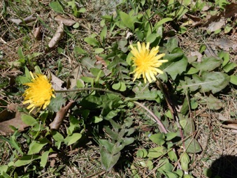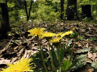 2001.04.18ガイコツ山 関東タンポポと西洋タンポポの見分け方は色々なサイトで説明されているからここでは触れない。最近関東タンポポが少なくなったという記述を多く見受けられるが、当方の観察の中では都内でも関東タンポポをたくさん見ている。白花のタンポポのところでも書いているが、関東タンポポは最盛期の時期を西洋タンポポより少し早くすることで西洋タンポポの忌避物質の攻撃から種を守っているように思える。これはあくまで素人の希望的な観測に過ぎないのであるが、都心から少し離れたところではまだまだ関東タンポポも健在。