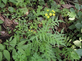 2003.06.06 横瀬 武甲山下の採石場の奥の沢筋の杉林の縁に沿って咲いている。葉の形に特徴があるので見分けやすい。夏に咲くキク科のものと比べ草体が柔らかく繊細な印象である。