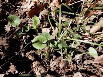 ※アオイスミレを覆っているジャノヒゲ(リュウノヒゲ)を除去した