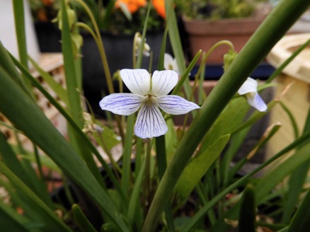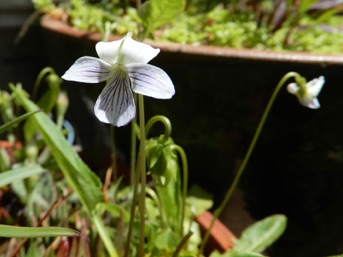 一時期近所のホームセンターの山野草コーナーで各地のスミレが販売されていたことがあり、その可愛さについ何種類も買い込んで育てていたことがある。これがその生き残りであるのか、どこかで採集して来たものか覚えていない。