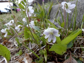 アリアケスミレはJR潮見駅の近くの紙工場の植え込みで毎年観察している。