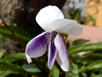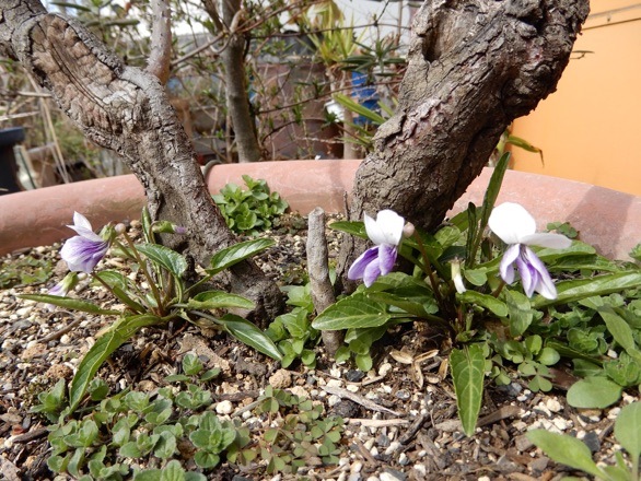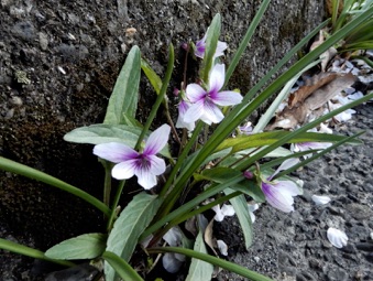 最初にUPした後に気が付いた。昨年、小手指陸橋を南に下ったところにあるGSで似たスミレを撮影した。こいつはきっとスミレやノジスミレの白花とするより無難なようだ。でも、アツバスミレを調べてもこんなに距が赤いイメージはどこにもない。ミドリタチツボと同じようにある種のウィルスに冒された変異株なのかもしれない。