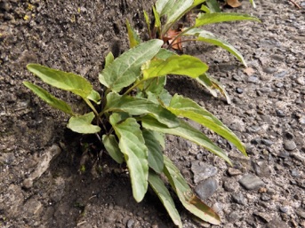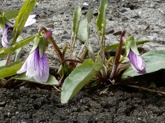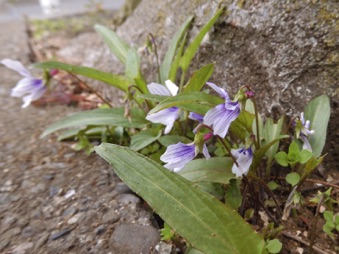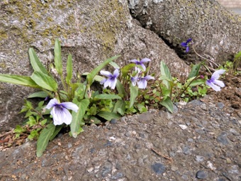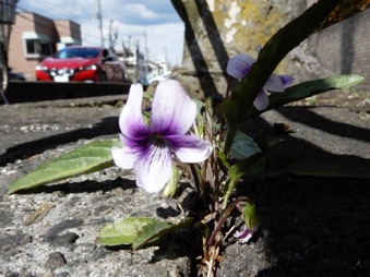 小手指陸橋を挟んで北と南に存在することは人為的な働き?それとも南のGSで給油した車はアツバスミレのタネを車体のどこかにくっつけて蒔いているのか。
