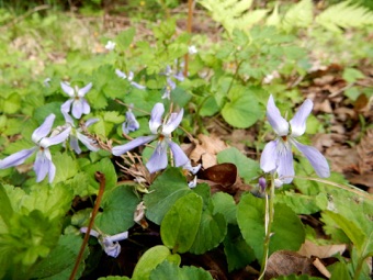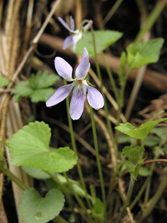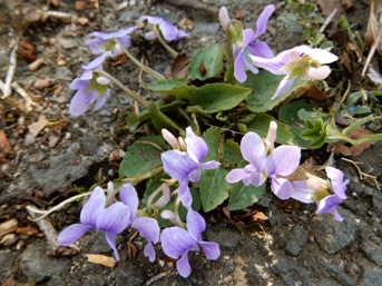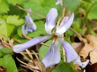 三ツ沢川に注ぐ奥まった支沢の斜面。これまでも何度もこの花を撮影していたが、野原や林縁に咲くタチツボスミレと同じに思っていた。オフシーズンに写真の整理をする時、スミレの図鑑の中にケイリュウタチツボの名前を見つけ、その特徴を見てるうちに沢添いに咲いていたものがそれに当ると気がついた。普通のタチツボよりも花が大きく花びらが細い。