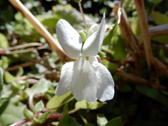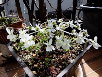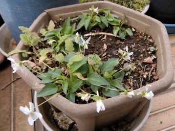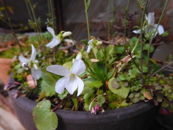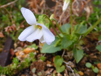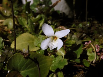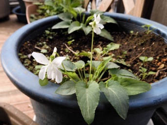 この自宅のシロバナもコスミレ? の可能性が高くなってきたのでタイトル&学名をコスミレに変更。