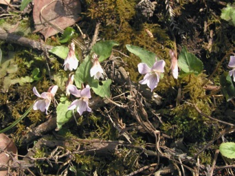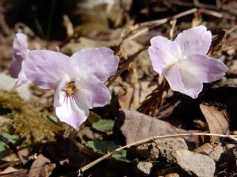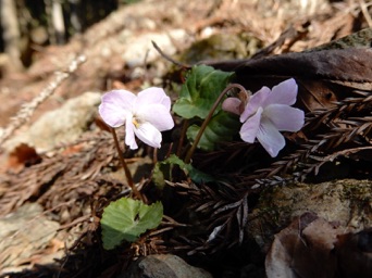横瀬の採石場の先の旧武甲山登山口近くの石混じりの斜面の下の方に生えている。実はこの同定にあまり自信はない。先に挙げたアケボノスミレの丸い葉と比べると、こちらの葉は先の尖った形であるが、それだけの差でナガバノという形容詞となるか疑問に感じている。専門家の知識をお借りしたいところであるが今はこれまで撮影した野草の整理が優先。間違いは後から修正して行こう。ということでこのHPを同定の資料とするのははなはだ危ういという言い逃れに徹する。