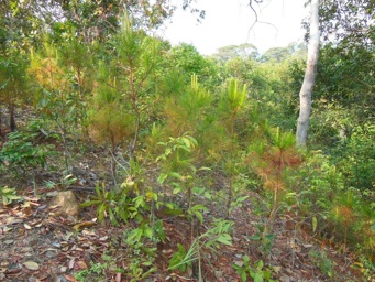 というより、松(針葉樹)は寒い所のものという先入観からすると、熱帯季節林になぜ松が生えていなければならないかの方が変わっている。そういえば、アラバマ大学の構内の巨大な松の例もあるから、松は寒い所のものという認識そのもの=日本の常識でものを見ては、本来あるべき姿をそのまま受け入れられないと思い知るべしである。