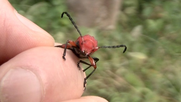 2014.08 HHL/チェンライ:初めて見たカミキリ。学生の作業を撮影中に見つけ、急いでいたこともあるのだが、デジカメで撮影した写真は全没。ビデオからキャプチャーした画像なのでこれ以上のアップはできない。