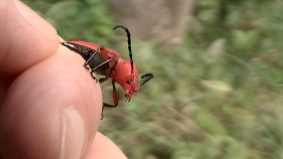 この赤いカミキリも撮影直後のチェックでは結構いい線をいっていたと思っていたが、取り戻せたデータはまったく駄目。