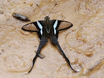 2014.08 HHL/チェンライ :今回初めて撮影したチョウ。村のタケノコ加工場の裏手にちょっとした崖があり、その縁にあるパッションフルーツの花を撮影している時に、妙に尾がひらひらしたチョウがいるのに気がついた。これまで何度か撮影したことのあるアオスソビキアゲハとは明らかに異なるチョウだったので、結構、長時間費やして撮影した。というのは、タケノコの加工を撮影している合間だったので、半袖短パンというほぼ無防備のままだったので、あっという間に蚊に何カ所も刺され腕などはボコボコになってしまった。その後痒みだけで熱が出るようなことがなかったのは幸運としか言いようがない。