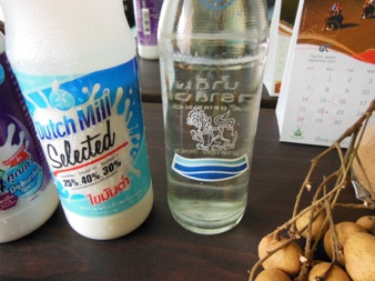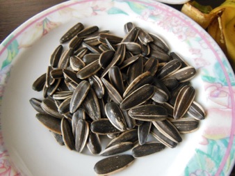 下4点に写っているのがベーシックなもの。牛乳は日本のものと変わらない。これは空き容器が重宝する。ホテルのサービスの水(ガラスの瓶)をこの容器に移して持ち歩く。コンビニの水のボトルは薄っぺらなプラボトルなので、デジカメなどと一緒にはできない。ビスケットまたはクッキーは市内のコンビニで調達。レーズンはこちらで買うと高いので日本から持参。ヒマワリの種は市内の市場で調達し、大袋から小袋に移し替えて持ち歩く。ヒマワリやナッツ類はコンビニでも購入できる。