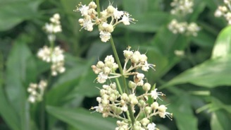 上は 五日市三ツ沢のものであるが、ガイコツ山やその近くの民家にも自生しているところがあり、当方にとってはおなじみの花である。下の写真はすでに咲き終わりに近く丸い玉だけになりつつあるが、咲き始めの白く透き通った花びらの頃、薄暗い林の中で出会うと不思議の国の妖精にでも出会ったような感覚に包まれる。