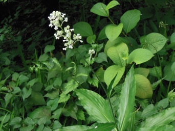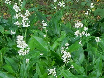 このヤブミョウガの大きな群落としては小石川植物園の常緑樹が生い茂った林下一面を覆っていたのを撮影したことがある。