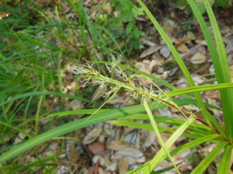 国道に面したPYYの入り口は、PYYへの人や物資、PYYからの人や物資の一息入れる所。そして、最近では町や衛星からの信号を受信できる所として、PYYやHHLの大人から若者に密かに地歩を高めている。だからイネ科があると云うのではないが、村では見ないイネ科の野草がある。きっとトラックで物資を運ぶときにくっついてきた種がこぼれたのだろう。これはイネ科というよりカヤツリグサ系かな。
