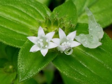葉の形や花のつき方、細かい毛が沢山生えていることなど、アカネ科のムグラの仲間の特徴とそっくりだが、この花は5弁というのがひっかかる。2014年夏HHLで撮影したハシカグサモドキというのは6弁だった。両方を掛け合わせて5弁というのはないですか?