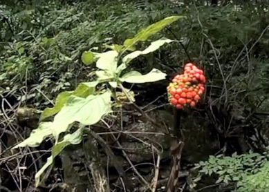 このマムシグサの実は横瀬の武甲山登山口近くの沢で撮影したもの。参考にUPした最下段のマムシグサの花は武蔵五日市の駅前の道を南に進み橋を渡ってから右に入ったところにある公園で撮影したもの。