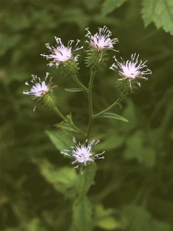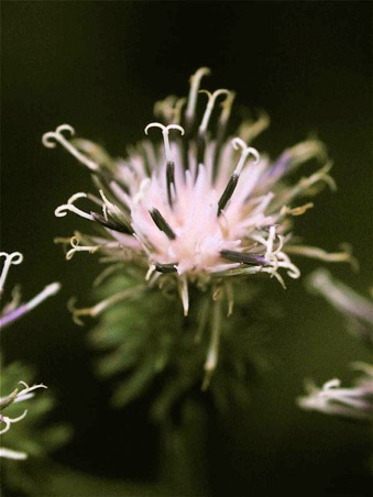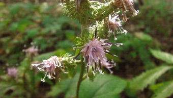 こちらがもう1種の花である。上の写真同様、薄暗いところで撮影したためグラフィックエディターで思い切り増感して色/形を浮かび上がらせているのでノイズの多い画像になっているが、上のタカオヒゴタイ?よりもこちらの方がピンクが濃く、花びら(=花)1枚1枚がはっきりしている。ヤハズヒゴタイ?としているが良くわからない。
