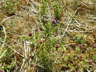 BMKの東にある乾燥した棚田に生えていた。日本で見られるルリタマアザミと同じ程の球形の花。小さいものはオジギソウの花にも似ているが、ルリタマアザミともオジギソウとも葉の形が異なるので帰国してから調べることにして現地では撮影に専念。