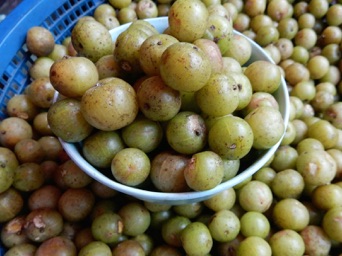 BMHHでもデザートとしてテーブルに上がり口にしたのだが写真も動画もない。これはチェンマイ市内に戻ってからワロロマーケットに行った時に露天で売られていたもの。1カップTB10。日本円で30円といったところ。喉にいいよというお店のオバさんや通りかかりのオバさんのお薦めに従い購入して食べながら市場見物。渋いけど、しばらくすると口の中がすっきりしてくる。でも、全部口にする前に飽きてしまい結局ホテルのゴミ箱。TB10支払って食べられる量だけ受け取ればいいのに。