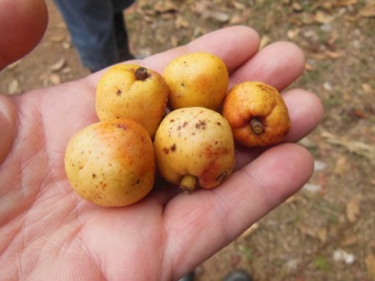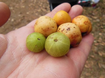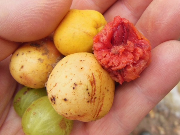 2016.02. BMK: 貯水タンク建設に向かう途中、村人が地面に落ちている木の実を拾って、自分たちで味見をしてから、美味しいから食べてみろと進めてくれたもの。(緑色の実は別に説明)
