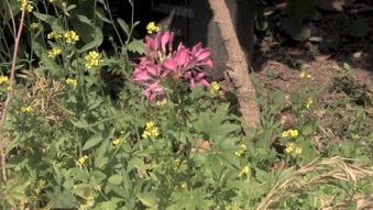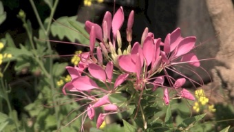 日本の園芸種として目にするのはほとんど白で蕾に微かにピンクが入った種。カンペンヒンでこの濃いピンクの花を見たとき新鮮な感じがした。普通、新鮮と云うと白や明るい色彩の印象があるが、クレオメは白と云う固定的なイメージが覆された驚きは新鮮そのもの。
