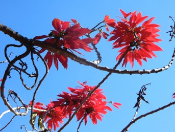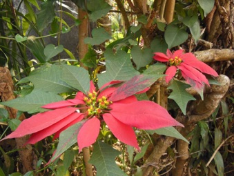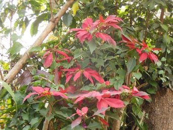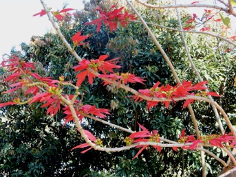 BMKのポインセチアはクリスマスの鉢植えのポインセチアが大きくなったという感じだったが、BMHHのポインセチアは見るからに樹木。樹木の枝先に大きな花が咲いたように展開している姿は見事。
