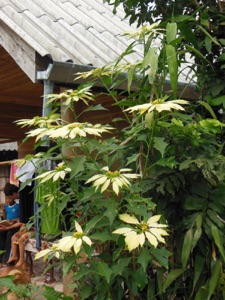 BMK及びその周辺の村で沢山見られた。日本ではクリスマス時に赤い葉(苞葉)のポインセチアが多く出回るので、ポインセチア=赤 と思い込んでしまうが、BMK周辺では赤・白ほとんど半々くらい植えられていた。このスライドショーでは赤のポインセチアと白のポインセチアを対比させるために用意した。