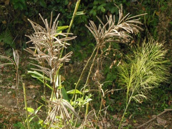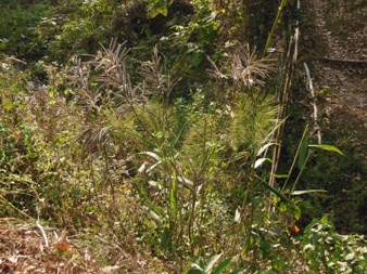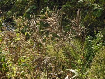 BMKの西の荒れ地にたくさん見られた。種の穂に細かい毛が密集して生えていて、それに西日が当たるといろいろな色彩となって輝き大変きれいだった。この近くはいつも放牧された牛がいるのだが、食べられていないということはそれなりの理由があるのだろう。でも、一瞬かも知れないが輝く時があるのはいい。