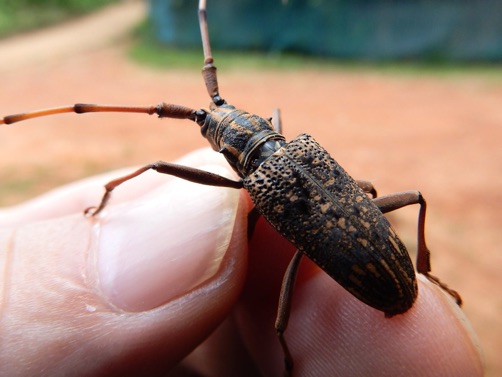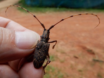 ※日本のゴマフカミキリに似ているが,こちらの方がほっそりしているのと、体色が赤い。