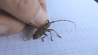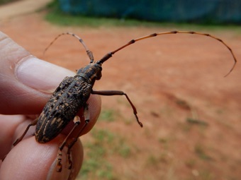 実際の映像中では、2016年2月にも撮影していると喋っているが、そちらはキマダラカミキリに似ていて、これを撮影するのは初めてだと思う。映像中の会話を覆い隠すために、MHHの林内の環境音を被せている。