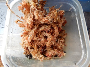 水に戻したミズゴケ(乾燥したものは一晩水に浸けてから使用)