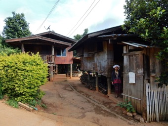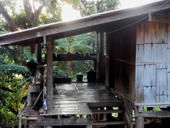 ここに見えるのは母屋と厨房(バンブーハウス)がセットになっているお宅。新しく建設された母屋は概ね高床を踏襲しながら用材は竹ではなく木材の板である。そしてカシュー(赤褐色)がペイントされていることが多い。